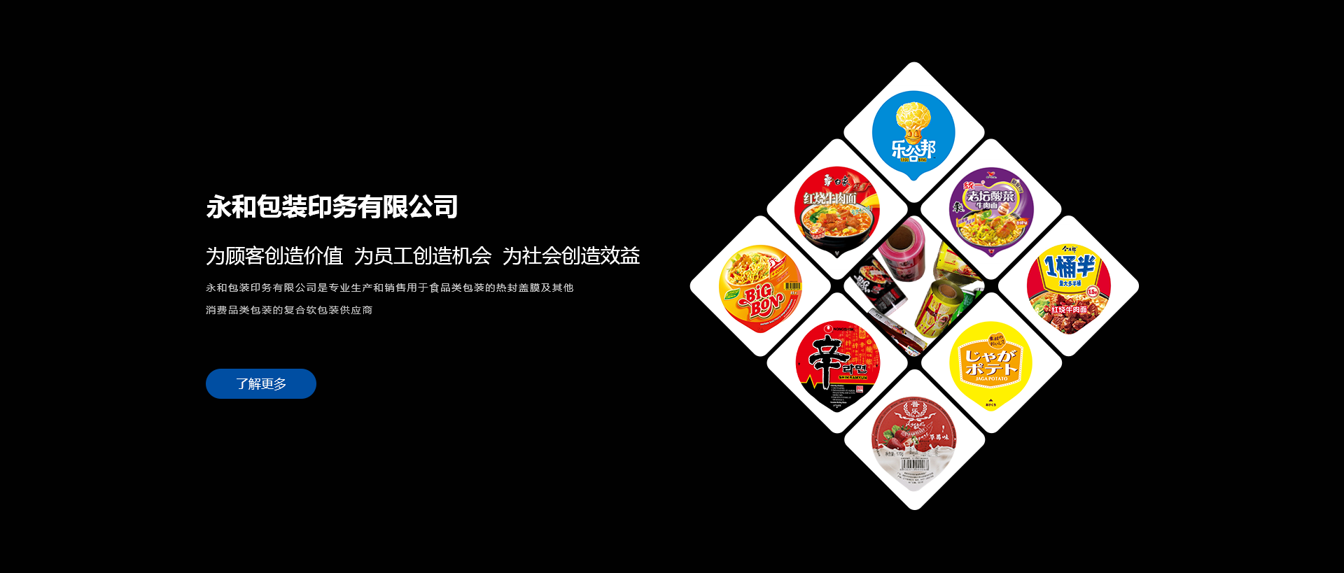 我們生產(chǎn)的熱封蓋膜主要應(yīng)用于方便面,冰淇凌、奶茶、薯片等食品類(lèi)包裝,可熱封于PP,PS,PET, PAPER等容器。其它軟包裝復(fù)合膜/袋可廣泛應(yīng)用于各類(lèi)休閑食品、化妝品、家庭護(hù)理類(lèi)產(chǎn)品等各類(lèi)市場(chǎng)。兩個(gè)生產(chǎn)廠(chǎng)年度產(chǎn)能可達(dá)60億張蓋膜及1,000噸軟包復(fù)合產(chǎn)品。生產(chǎn)流程都遵循和受控于ISO 9001, ISO 14001, FSSC 22000。
